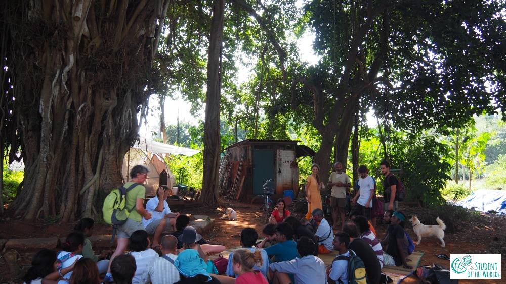 We’ve been on the road for most of the week in Auroville and the surrounding bioregion in Tamil Nadu Province. In Auroville we visited the farm Auro Orchard that recently made the shift from industrial to organic farming, the volunteer-based reforestation project Sadhana Forest (which I volunteered at in Kenya), Solitude Farm which focuses on local permaculture gardens and foods as well as Sacret Groves and the Earth Institute which both experiment with alternative ways of constructing buildings and many more.